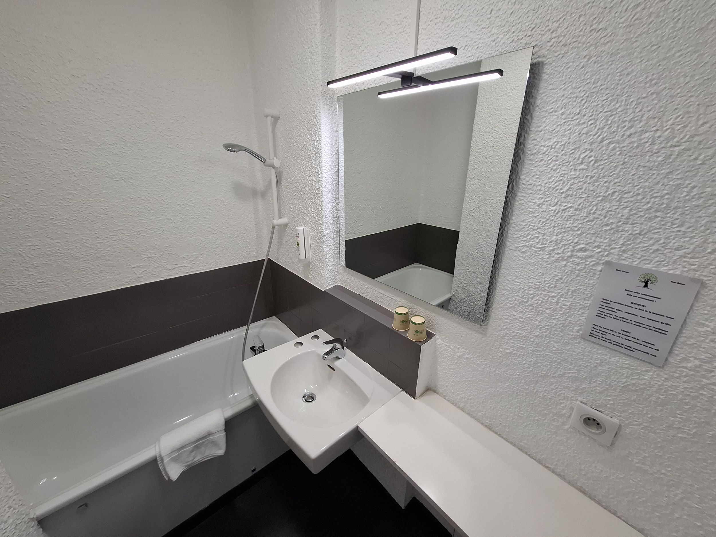 Sa salle de bain privative (douche ou bain) est pourvue de produits de toilette.