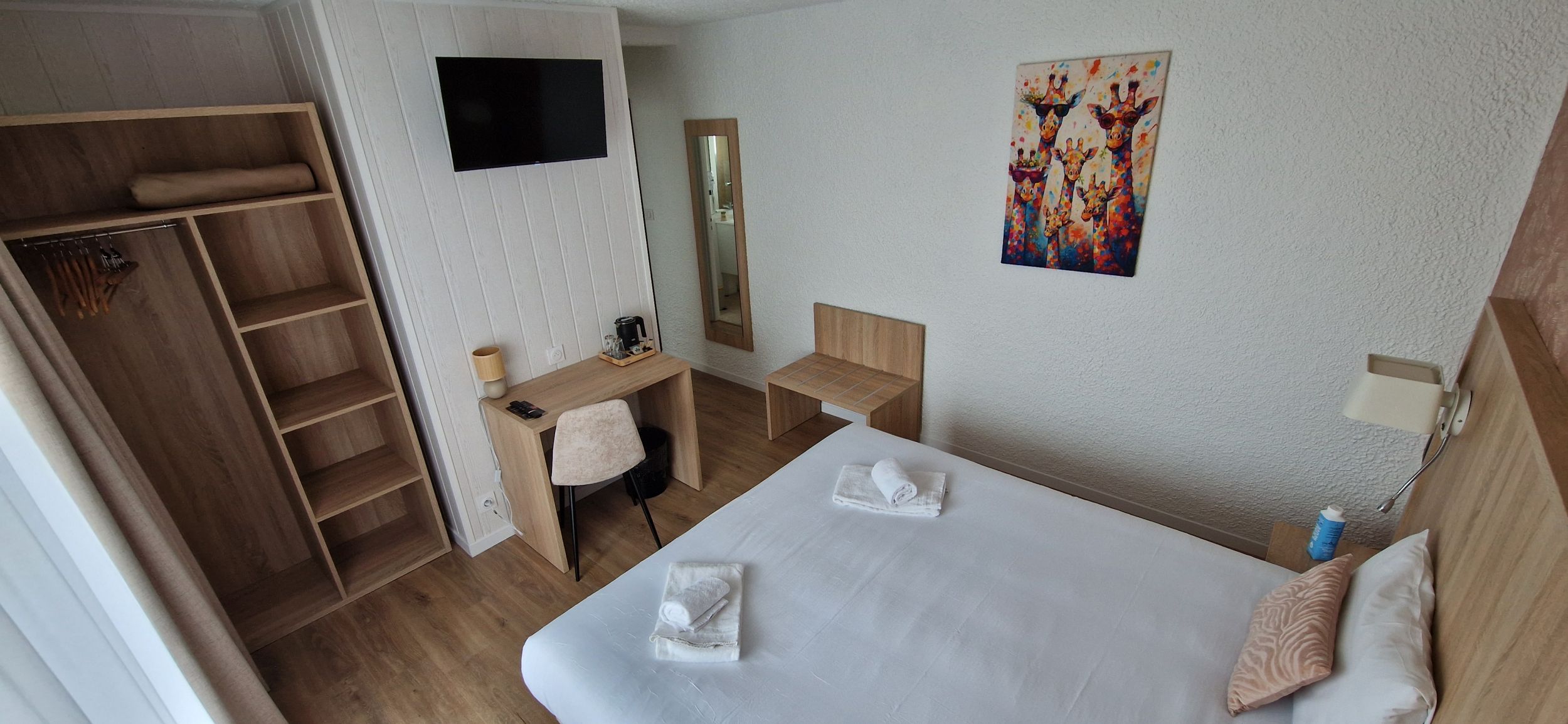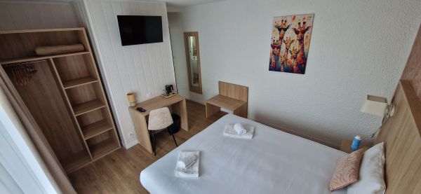 Grande chambre rénovée avec lit de 180cm et salle de douche ( sèche cheveux,shampooing gel douche).
